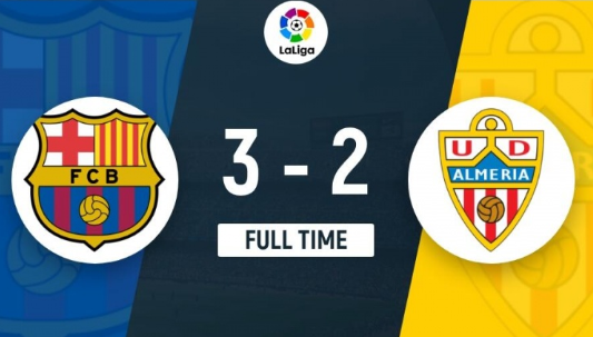 西甲第18輪,巴薩主場對陣阿爾梅里亞。上半場,阿勞霍頭球攻門被撲,拉菲亞補(bǔ)射破門。隨后阿勞霍失誤,巴普蒂斯塔為阿爾梅里亞扳平比分;下半場,拉菲尼亞角球助攻羅貝托頭球破門。佩尼亞被阿勞霍撞翻造成脫手,埃德加打進(jìn)空門。萊萬助攻羅貝托再次超出,佩尼亞終場前貢獻(xiàn)關(guān)鍵撲救。最終,巴薩3-2戰(zhàn)勝墊底的阿爾梅里亞,終結(jié)聯(lián)賽2輪不勝&各項賽事3場不勝,先賽一場落后暫時榜首的赫羅納6分。